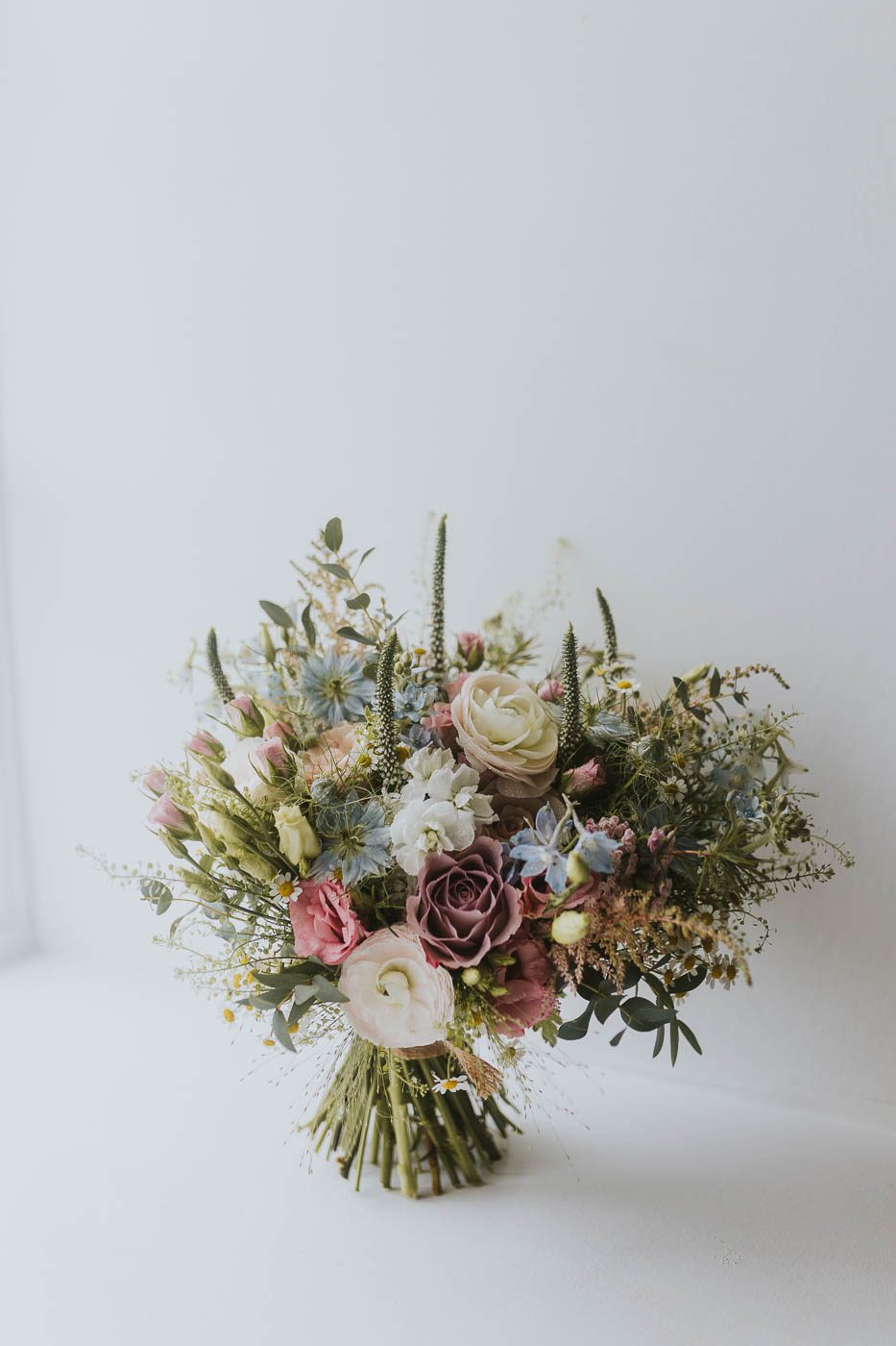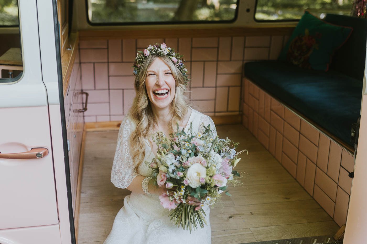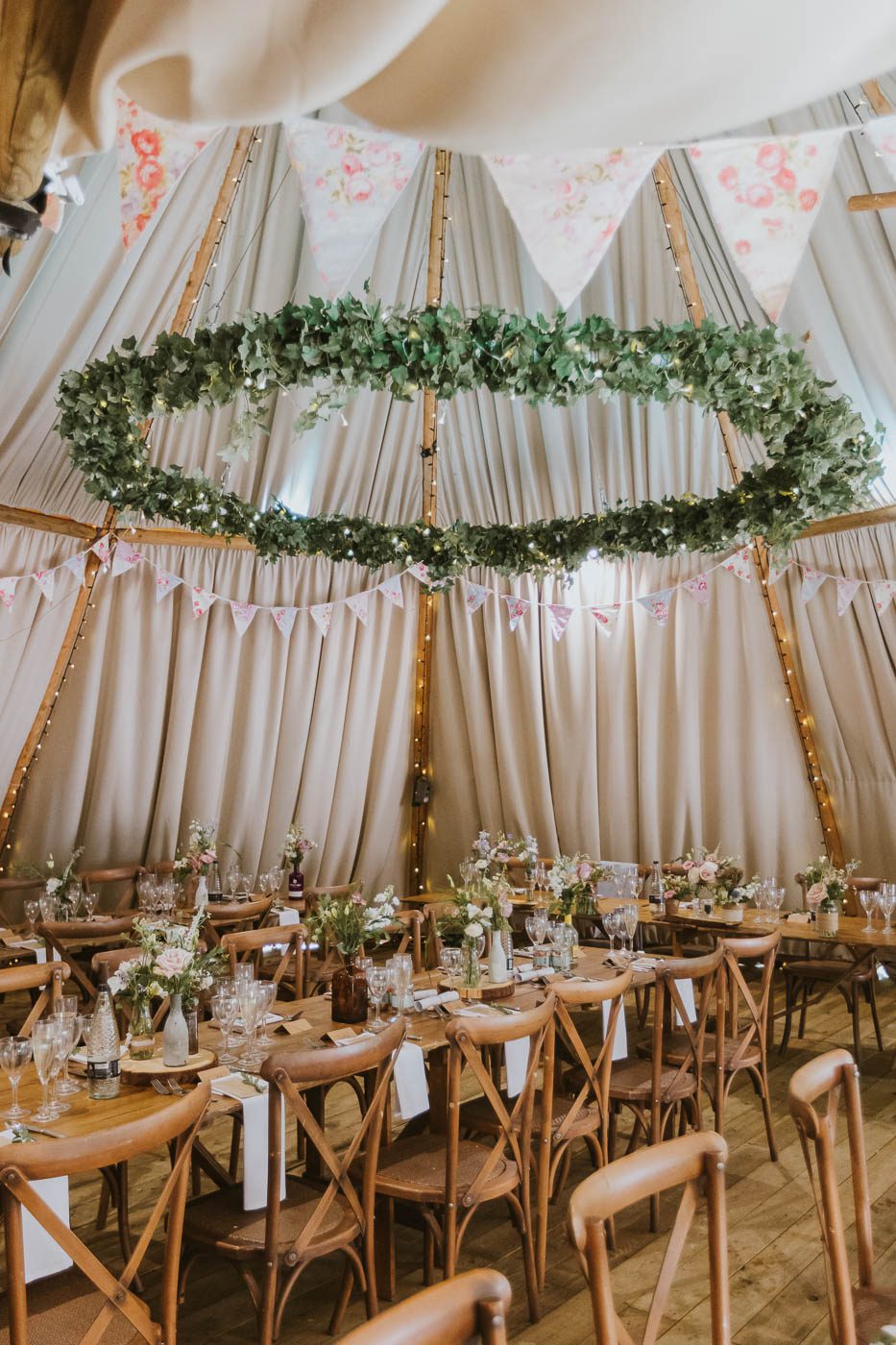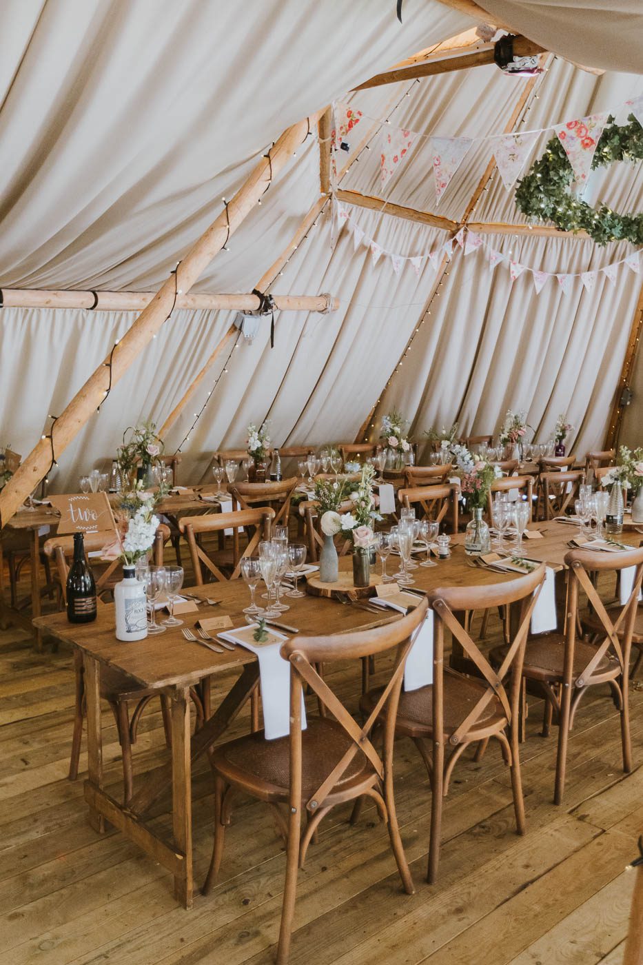 Michelle & Adam had also booked Birdie & Co‘s Camper Van which doubled as a photo booth in the evening but was free for us to jump into and take a ride out to the woods arounds Hazlewood for some photos of the two of them. Coincidentally we had both separately spotted a gorgeous patch of bluebells not far up the drive so we headed straight there and got some gorgeous shots of them together. A few pics with the camper and it was back to the reception for Michelle and Adam to have a breather and for me to get some photographs of the gorgeous set up in the tipi. I adored their cake by one of my faves, Where The Ribbon Ends, which was decorated with dried flowers.