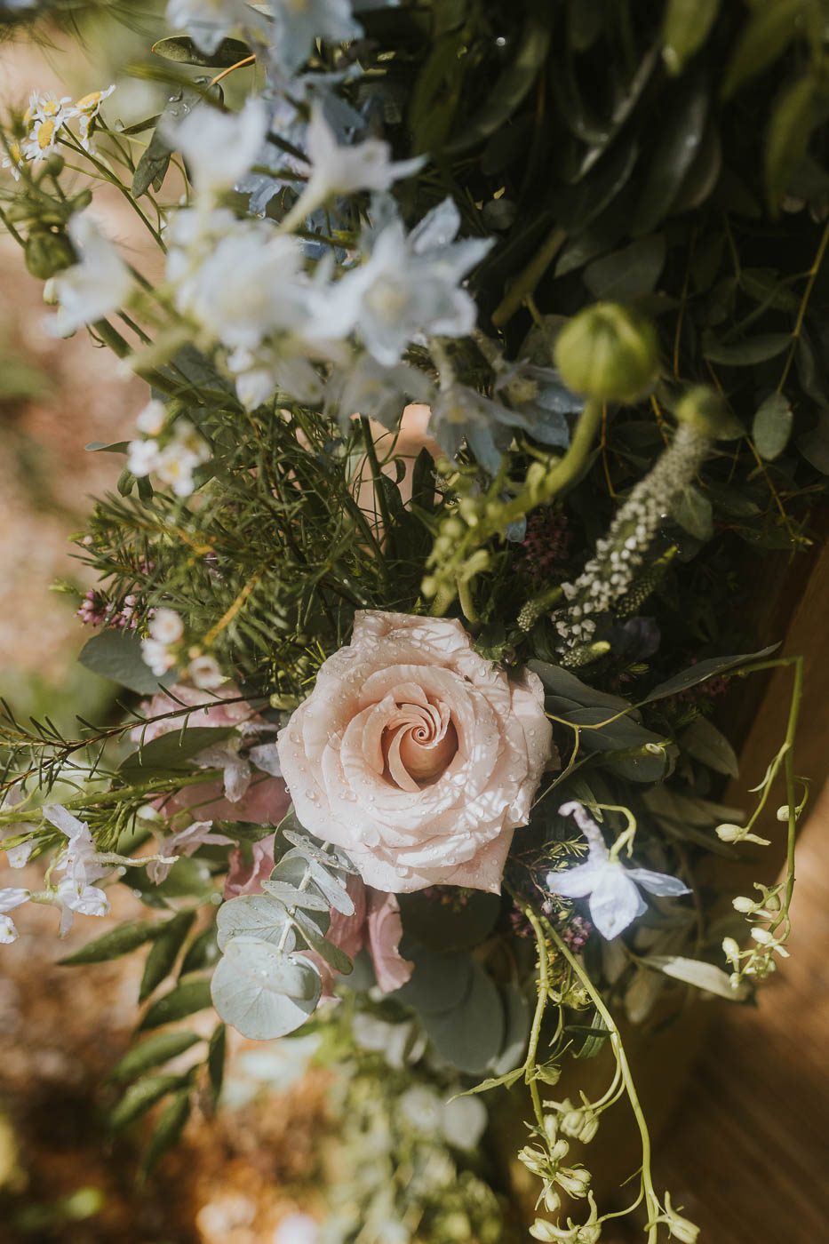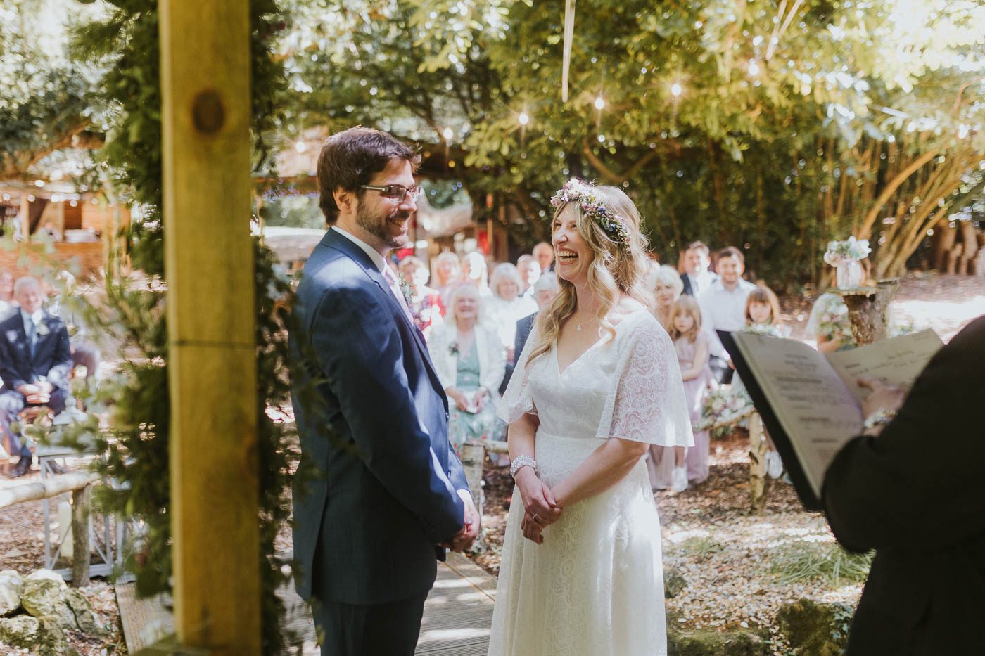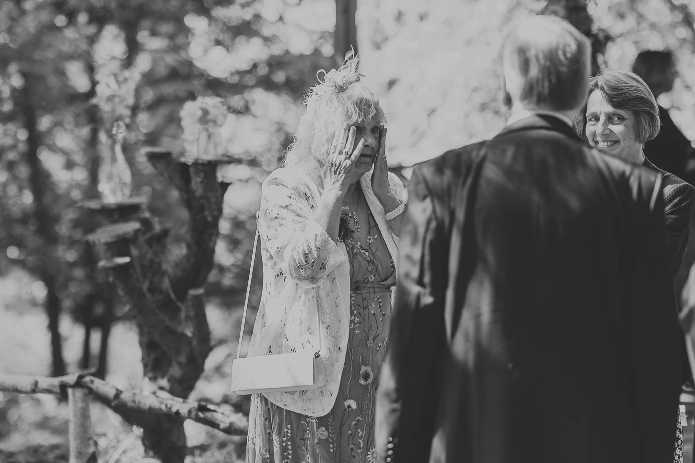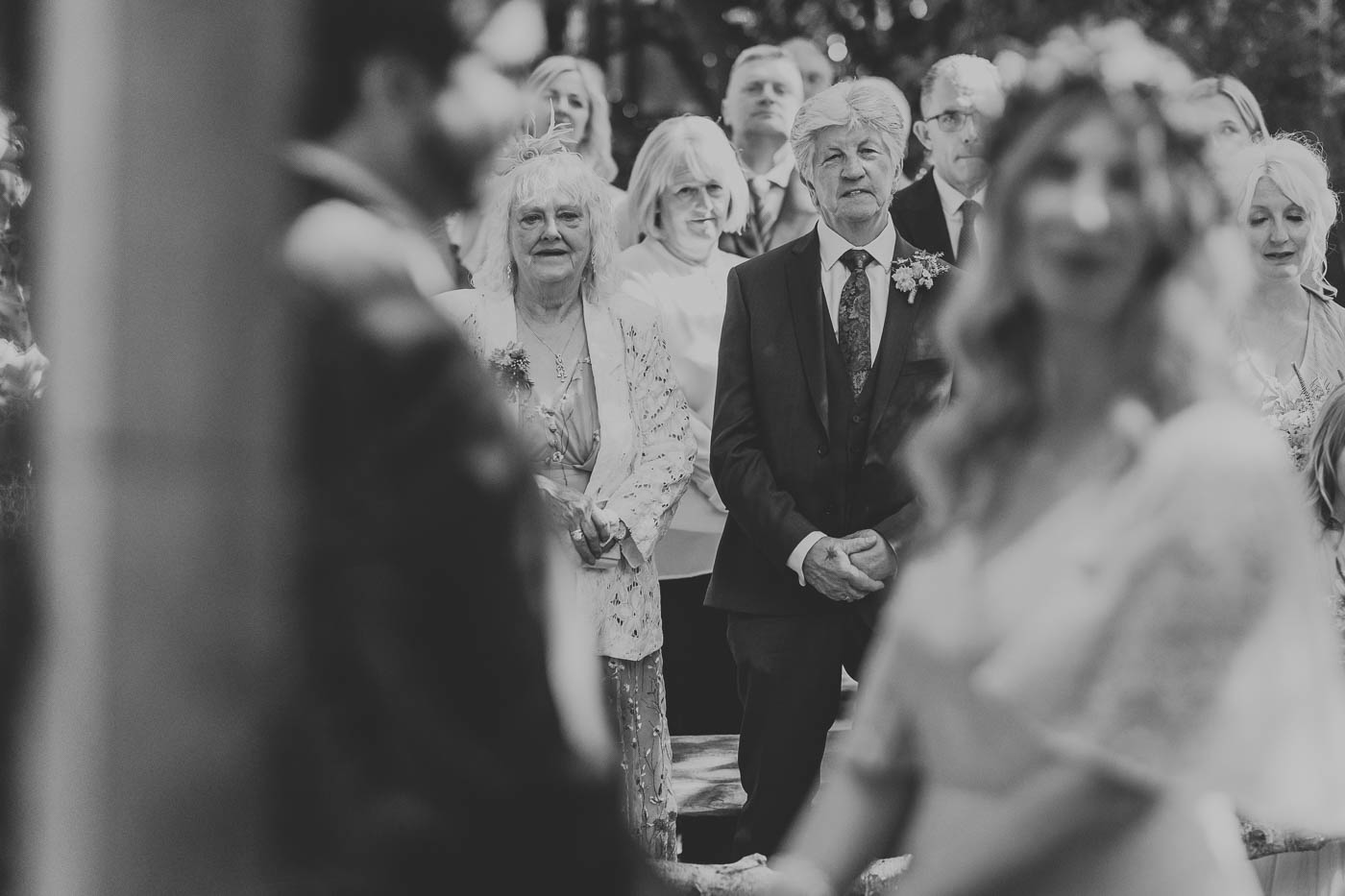I spent the next hour or so capturing Michelle having her hair and make up done by Natalie, and chatting with her bridesmaids and lovely flower girls who were such sweethearts. Her mum joined us when she was dressed and set off crying pretty much as she walked in and saw Michelle having her flower crown fitted! Then it was time to tidy up and get Michelle into her dress. We brought her dad in to see her all ready to go and then I made my way over to the woodland wedding area where the ceremony and reception were taking place. I hadn’t been to Hazlewood in nearly 3 years so this was my first time seeing their new woodland venue, and it’s gorgeous!