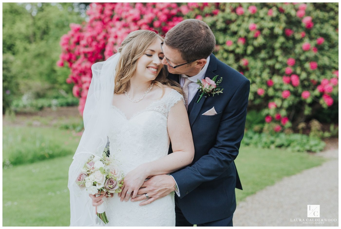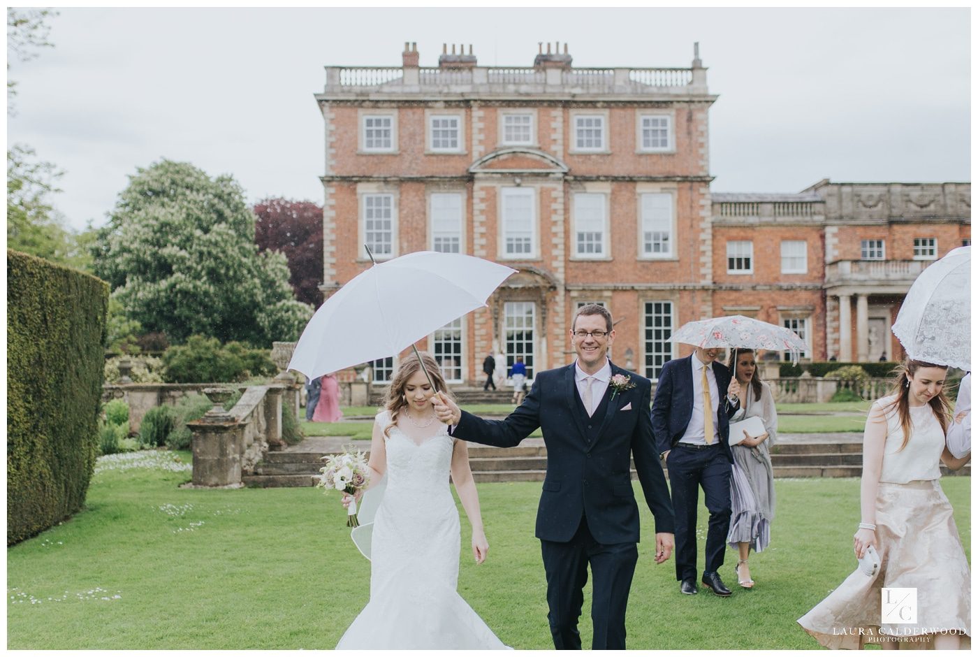 The gardens at Newby are incredible; I could’ve spent hours there! And I was extra excited to be able to photograph at Newby in May because I knew there would be so many beautiful flowers around. But I managed to control myself (more or less, ha!) and we made for the laburnum walk, which I knew would be in full bloom, and happily (for me at least!) stumbled across some amazing rhododendrons on the way. That was when the weather took a turn and we dashed back up the lawn to the hall where Sarah & Pete’s friends and family were enjoying drinks and canapés inside.