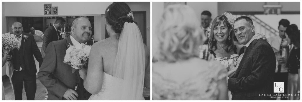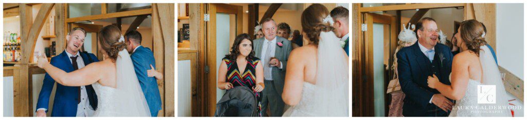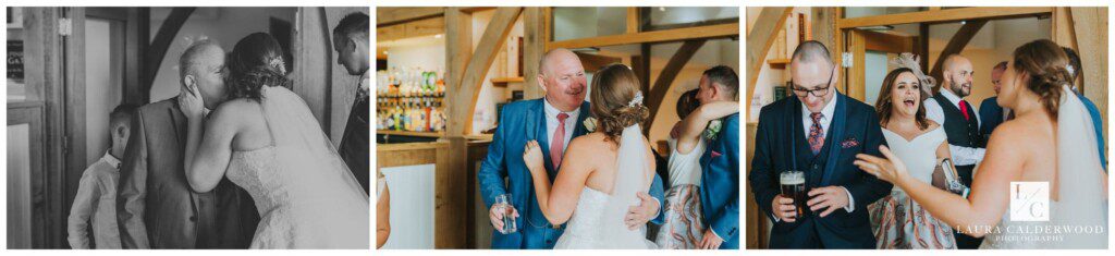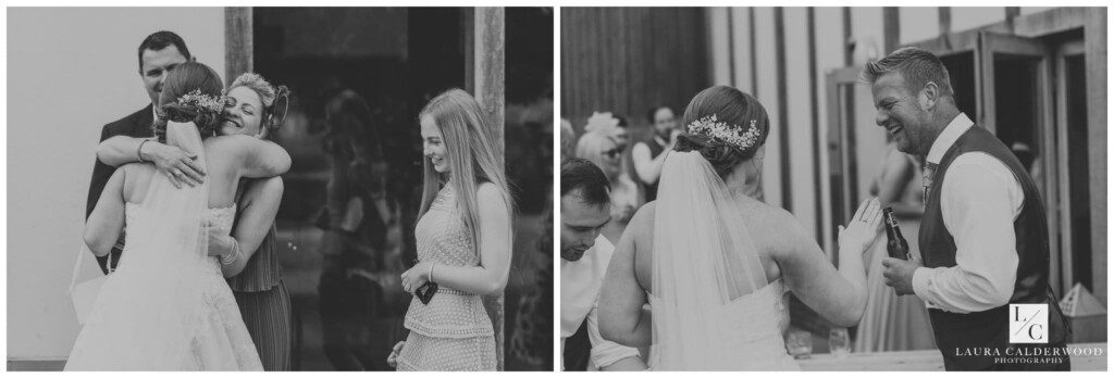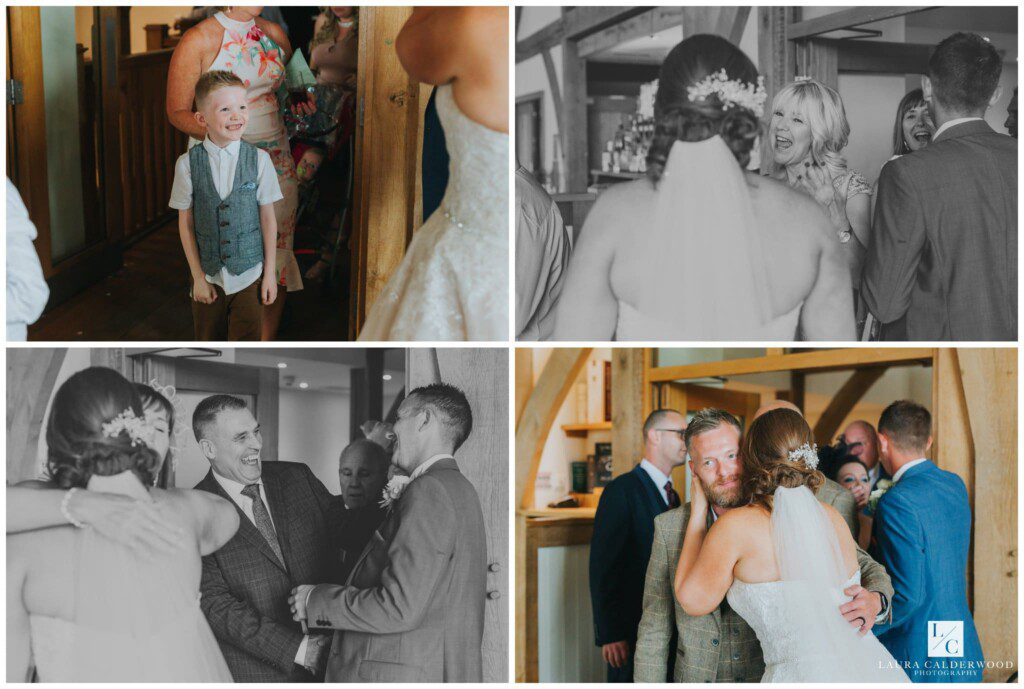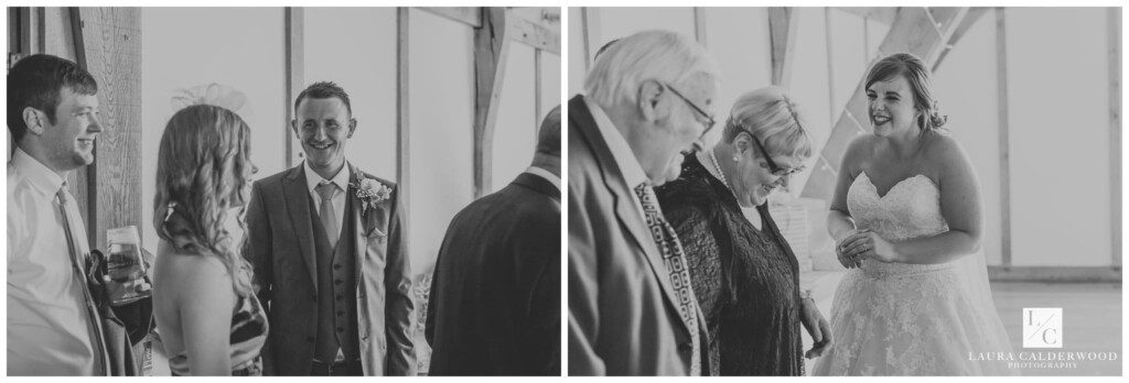 It was coming up to speech time so I dashed inside to get some shots of the tables set up for the wedding breakfast. And it looked incredible, again! I love that I can get a room shot from above at Sandburn, although the ascent to the balcony is not my favourite! Amy and Mark soon joined us and the receiving line started. Receiving lines seem to be a bit like Marmite – you either love them or hate them! I actually quite like them (depending on the light, dahling!); it’s a great time to get loads of candid photos of guests looking happy!