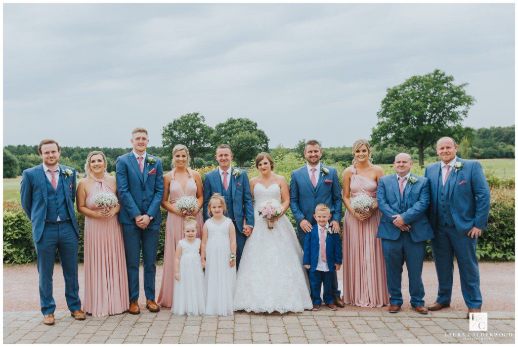Amy and mark grabbed a drink and led everyone back down to the bar to start the drinks reception. We had loads of time so I let them relax and chat to people for a while before we started the group photos. Of course it was at this point that the rain started! Luckily the entrance at Sandburn is undercover and big enough for about 6 people so we started off with the smaller groups in there, and then happily the rain stopped and stayed away until the evening. So we moved back to the terrace for the bigger family groups and even managed a shot of everyone from the balcony. Sadly the course was still covered in golfers at this point so we took Amy and Mark into the rose garden for some pictures of the two of them in the peace and quiet! As so often happens they claimed to be awkward in front of the camera and to have no idea what they were doing, only to end up being total naturals (in my opinion anyway; I’m sure they would disagree!).