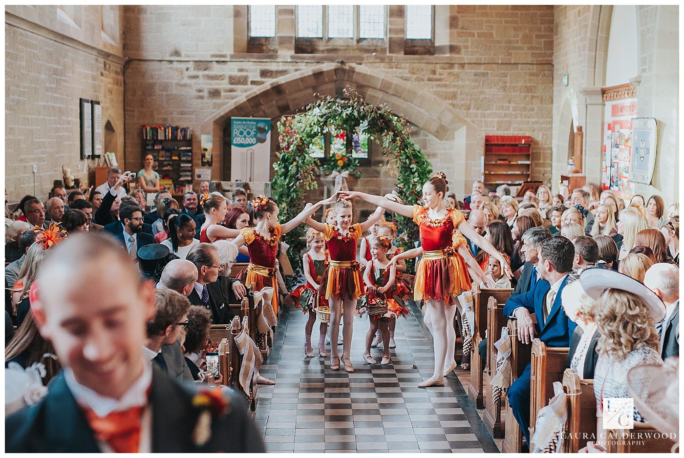 Tamsin and her mother own the Wright Theatre Arts Dance Academy in Ilkley and are both incredible professional dancers. So dance was bound to be a big theme for this wedding! They had choreographed and taught a beautiful ballet routine to some of their students who performed this in the aisle as Tamsin and her bridesmaids made their way down. Cuteness overload! Tamsin has a particular love of Bollywood dance form her time in India and had choreographed another routine for some of her older students to perform for the congregation whilst the register was being signed.