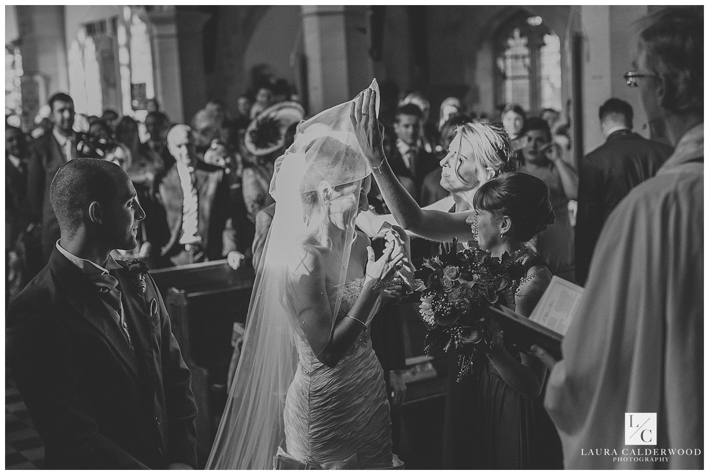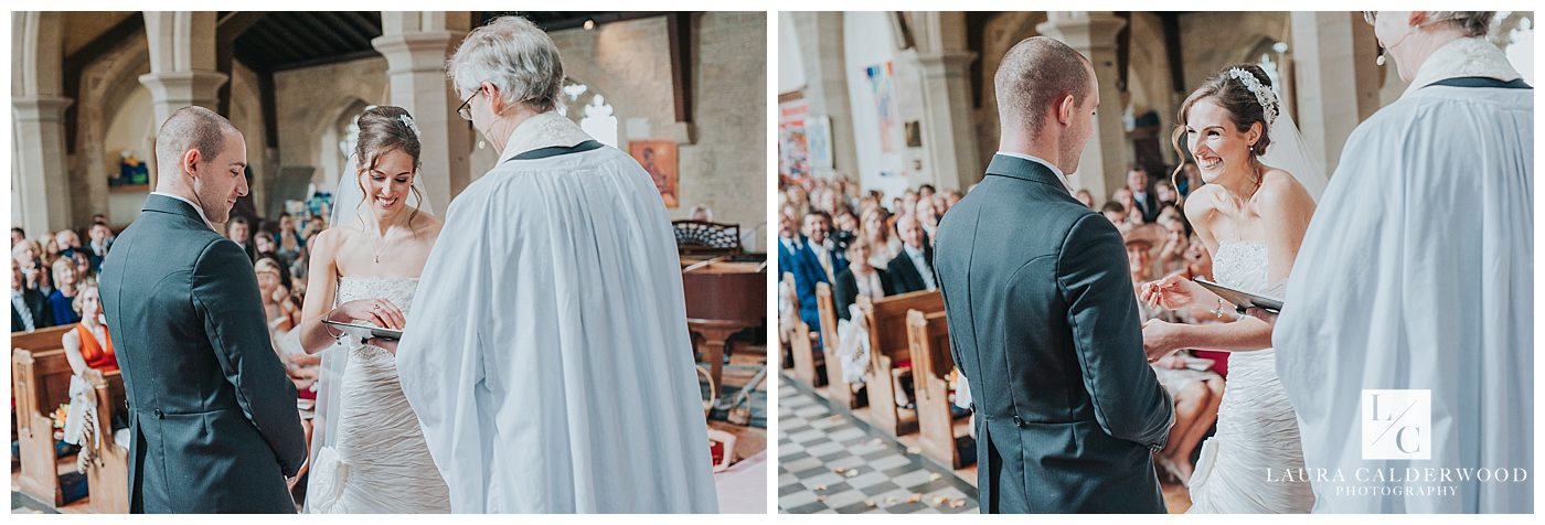 Once Tamsin was dressed we went out into the garden for a few family photos and then I quickly made my way to the church to join Eleanor and the guys. Whilst Eleanor was inside the church capturing all the guests excitedly chatting I waited outside to see Tamsin and her dad arrive. Then I legged it down the aisle so that I could be in place to see her make her way down the aisle to Nick.