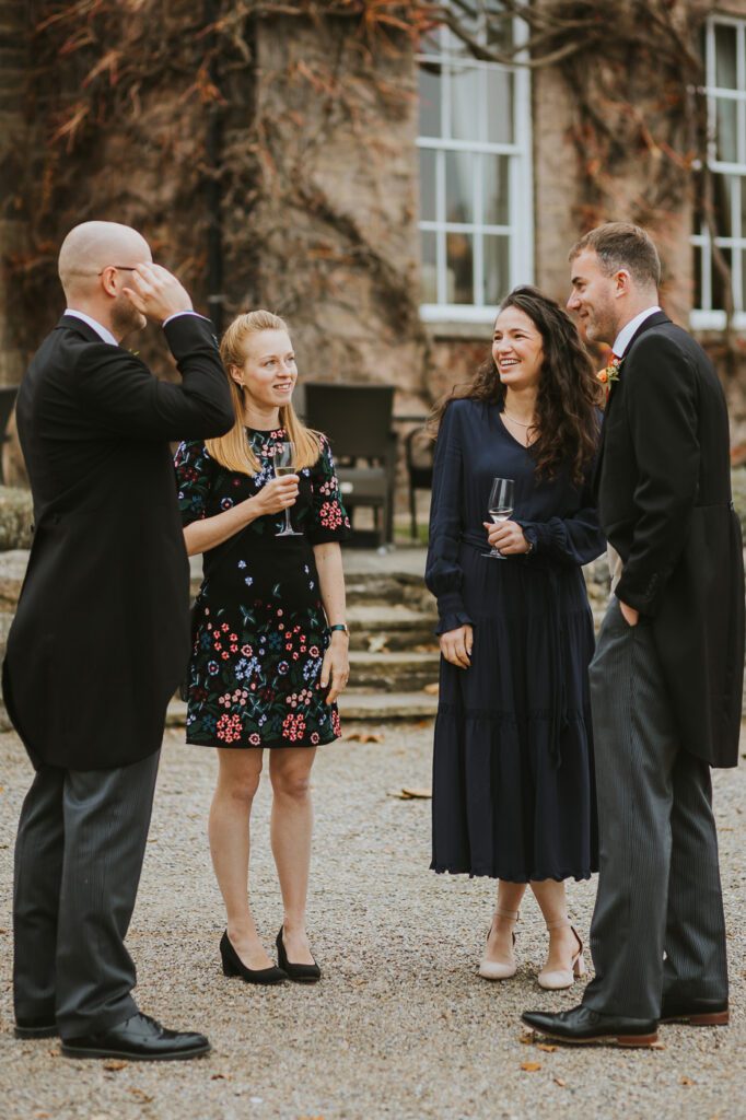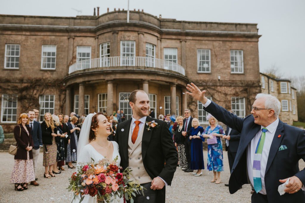 Because the weather held out, we headed straight outside after the ceremony for confetti — always one of my favourite moments to photograph. There’s something about that burst of movement and laughter that sets the tone for the whole celebration. We then moved into group photos and couple portraits around the grounds while my brilliant second shooter, Lissa, joined the drinks reception to capture all those natural candid moments of guests hugging, laughing, and generally having the best time.