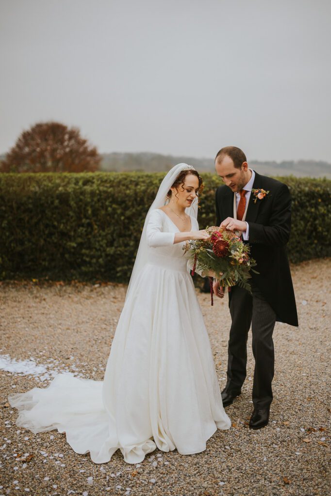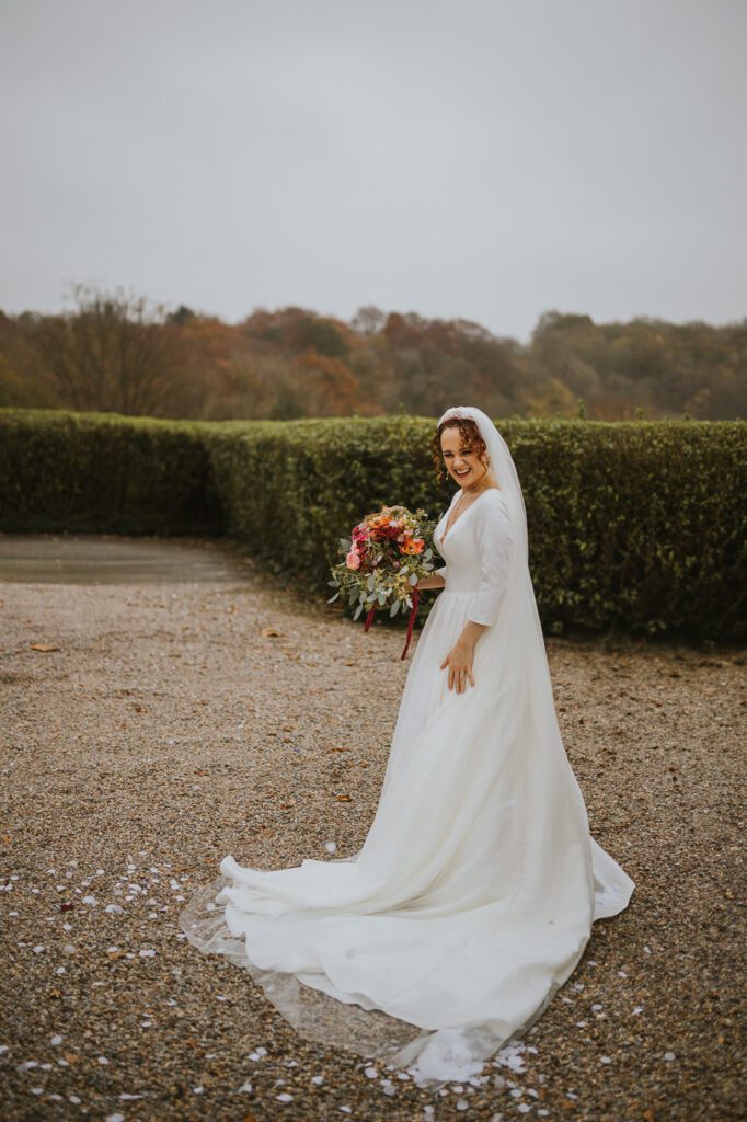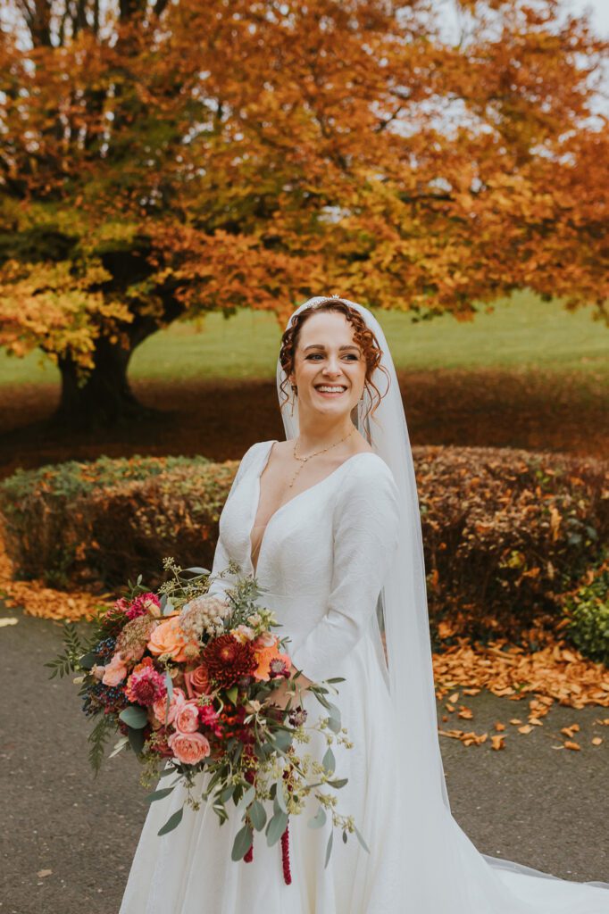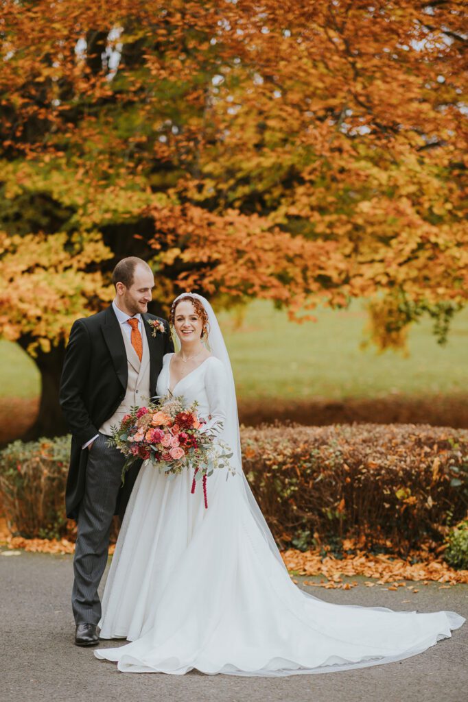 If you’re looking for a Wood Hall wedding photographer who has seen how magical this venue looks in autumn, Laura and Mike’s November wedding is for you! From the moment I drove up the long approach road, lined with towering beech trees glowing in rich copper and golden tones, it felt like the whole day had been dipped in warm seasonal colour. November weddings can be unpredictable, but we were lucky — chilly, yes, but beautifully dry, which meant we could fully enjoy the grounds.