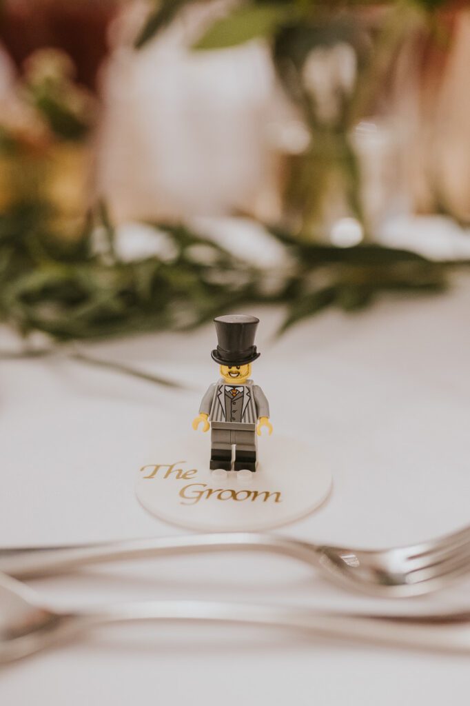 One of the most unique touches I’ve ever seen at a wedding made an appearance during the reception: Laura and Mike had created individual LEGO figures for every single guest, matching their outfits, hairstyles, and even hobbies. I got one too, which honestly made my day.