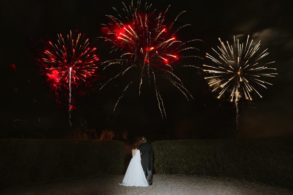 As the light faded, we gathered outside again for sparklers after the speeches — always such a fun atmosphere — and just when everyone thought the surprises were over, Laura and Mike treated their guests to a full firework display. It was the perfect high-energy moment before heading back inside for cake cutting and a packed dance floor.